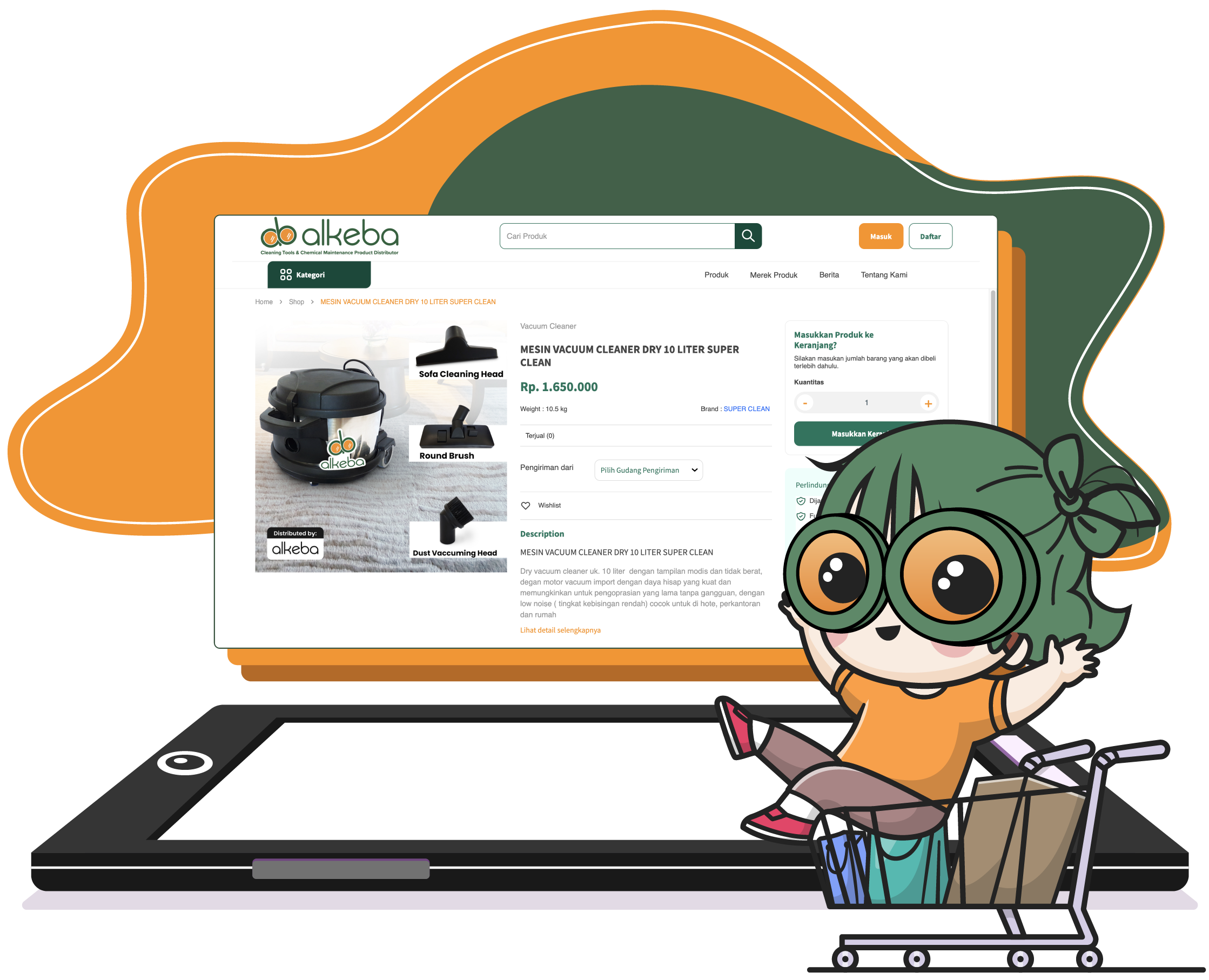 ALKEBA hadir dengan visi menjadi pusat pembelanjaan produk kebersihan dan sanitari terbesar di Indonesia. ALKEBA menyediakan produk kebersihan dari brand brand pilihan baik produk import atau pun local serta pengrajin UMKM alat kebersihan dengan tetap memperhatikan asas tepat guna dan tepat harga, sehingga product yang disediakan selain berkualitas tinggi juga ekonomis.